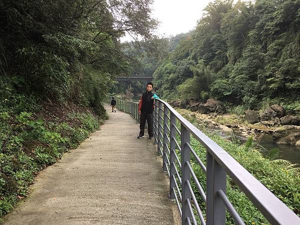 我們就直奔十分瀑布(從火車站到十分瀑布要花30~40分鐘[走路],旁邊也有出租電動機車),但往十分瀑布的路線兩條(左邊那條是從下往上看瀑布,右邊那條是跟瀑布同樣高度看),我們是選擇右邊那條路走(因為有人行道),再加上有年幼的小孩,所以我們選擇了邊那條路,