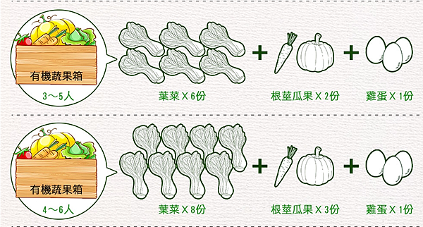 如果家裡人多~建議可以買大量的分~而且蔬菜都會幫您配好~不用煩惱要選甚麼~以下是4-6人分